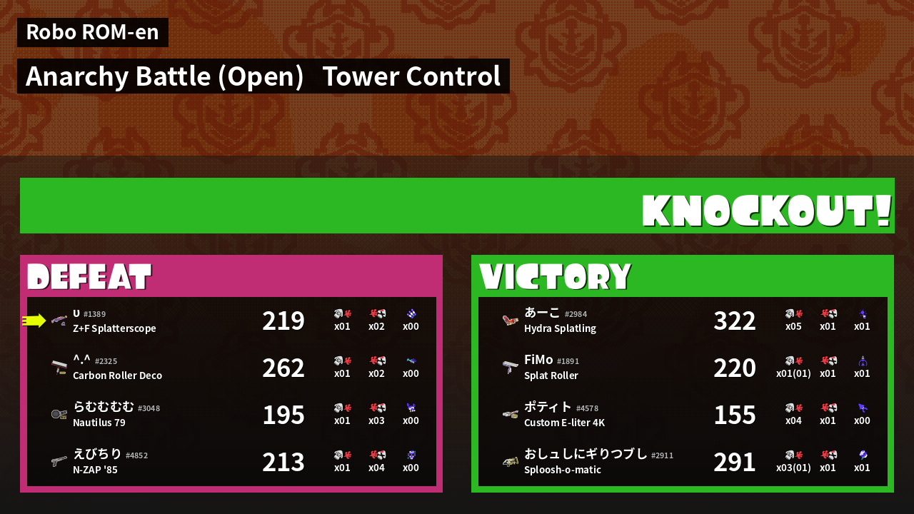 | Mode | Tower Control - Anarchy Battle (Open) | ||