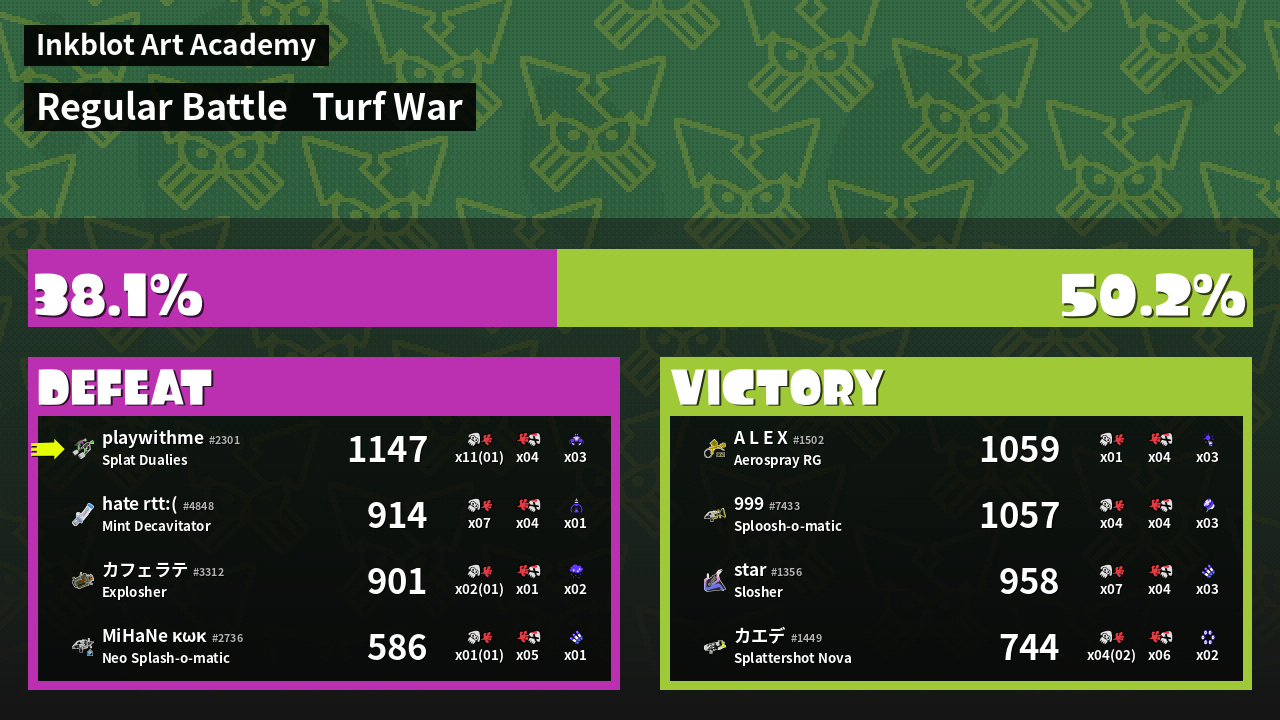 | Mode | Turf War - Regular Battle | ||