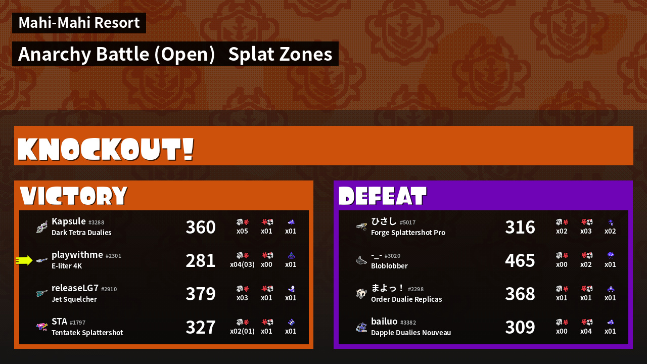 | Mode | Splat Zones - Anarchy Battle (Open) | ||