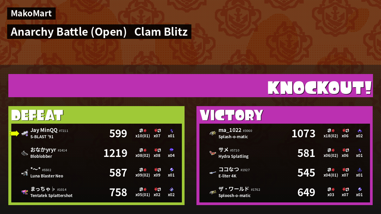 | Mode | Clam Blitz - Anarchy Battle (Open) | ||