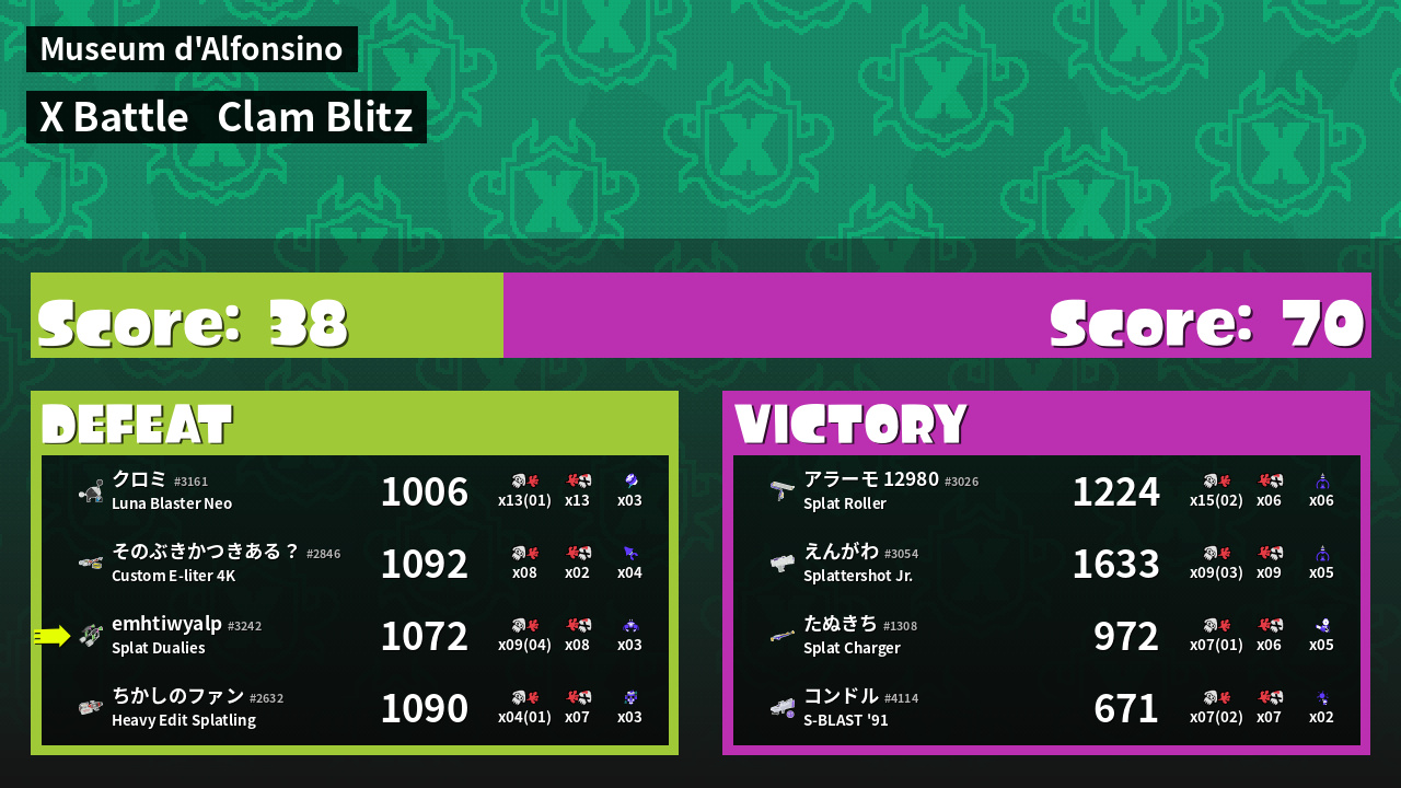 | Mode | Clam Blitz - X Battle | ||