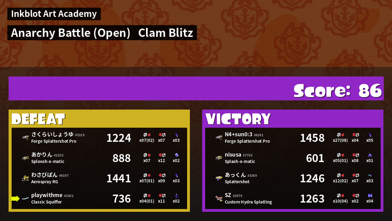 | Mode | Clam Blitz - Anarchy Battle (Open) | ||
