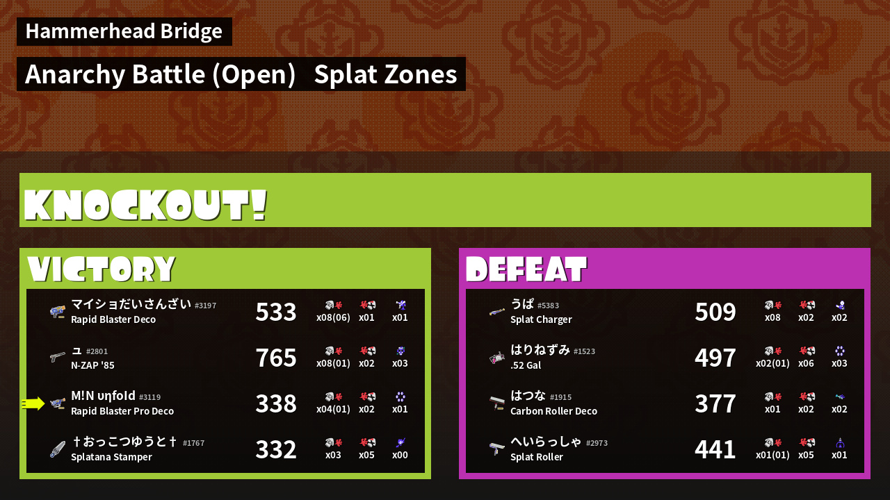 | Mode | Splat Zones - Anarchy Battle (Open) | ||