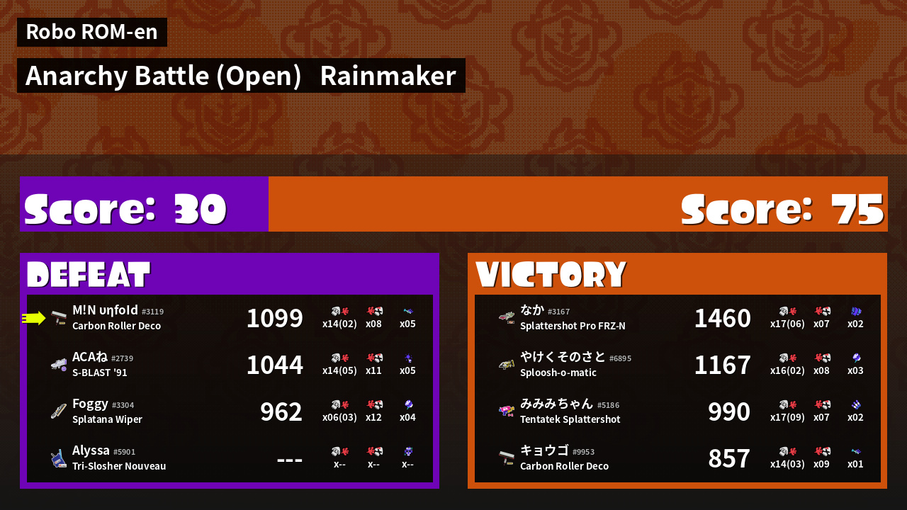 | Mode | Rainmaker - Anarchy Battle (Open) | ||