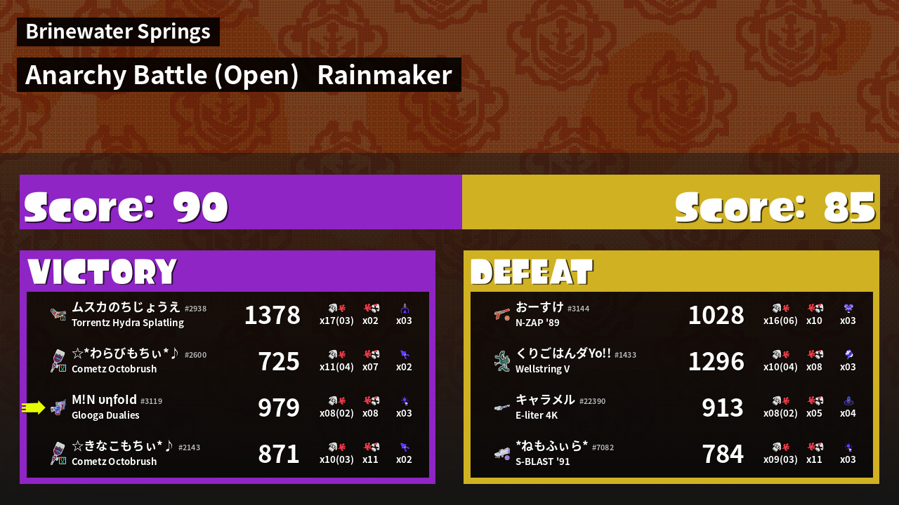 | Mode | Rainmaker - Anarchy Battle (Open) | ||