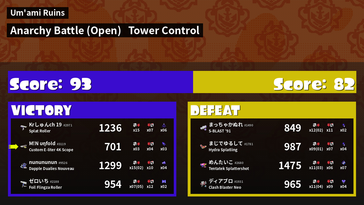 | Mode | Tower Control - Anarchy Battle (Open) | ||