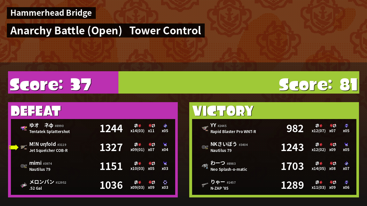 | Mode | Tower Control - Anarchy Battle (Open) | ||