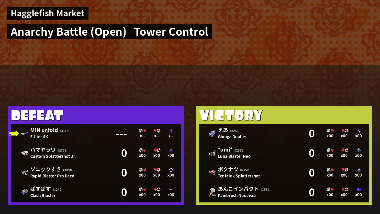 | Mode | Tower Control - Anarchy Battle (Open) | ||