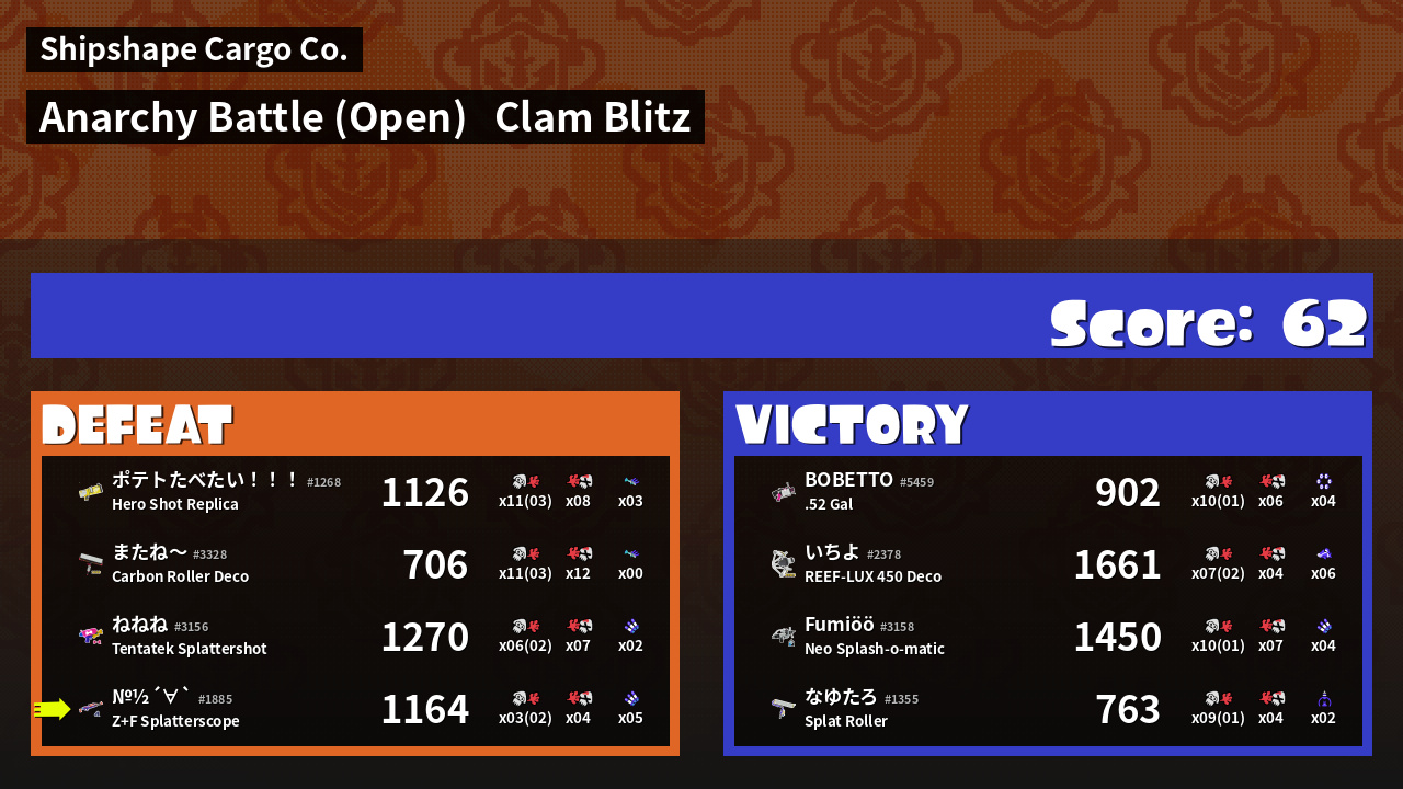 | Mode | Clam Blitz - Anarchy Battle (Open) | ||