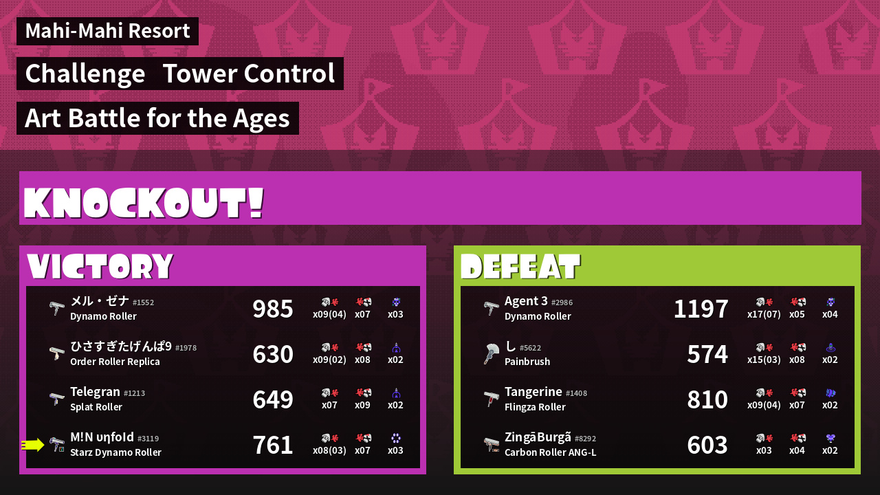 | Medals | #1 Damage Taker #1 Killer Wail 5.1 User #2 Turf Inker | ||