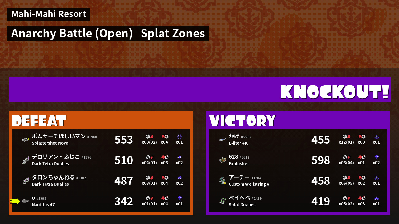 | Mode | Splat Zones - Anarchy Battle (Open) | ||
