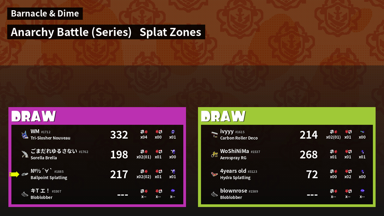 | Mode | Splat Zones - Anarchy Battle (Series) | ||