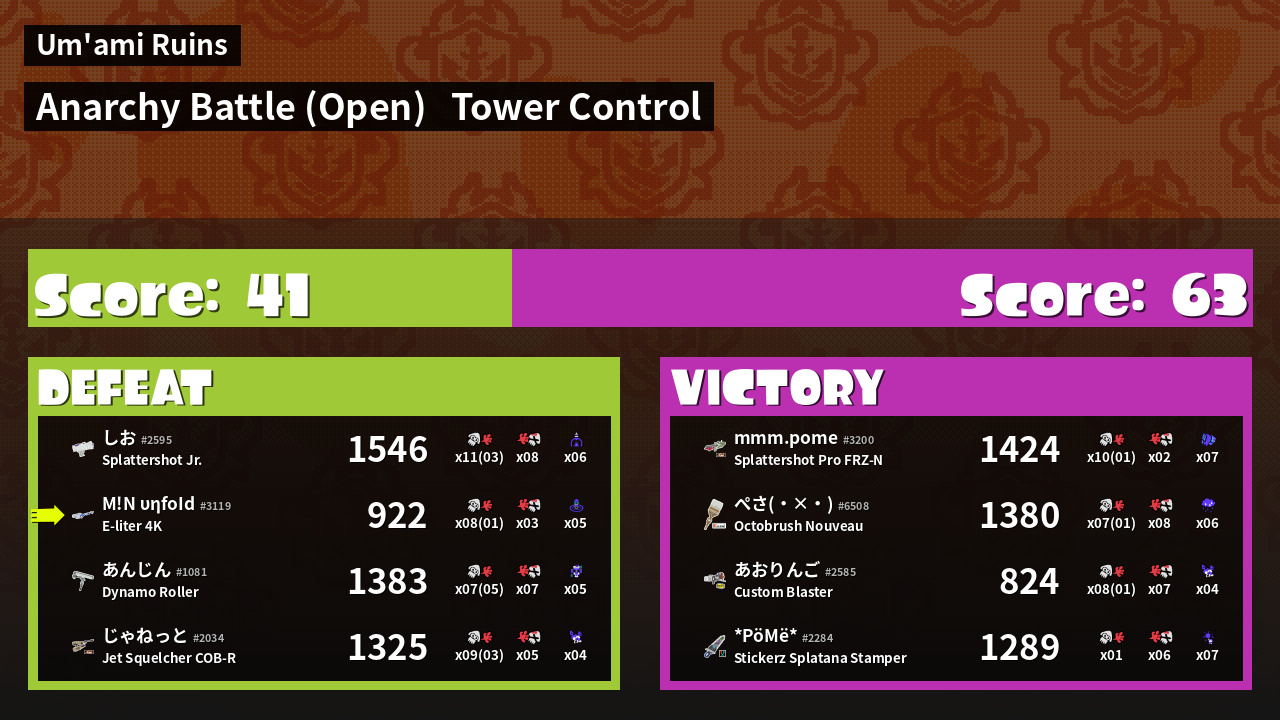 | Mode | Tower Control - Anarchy Battle (Open) | ||
