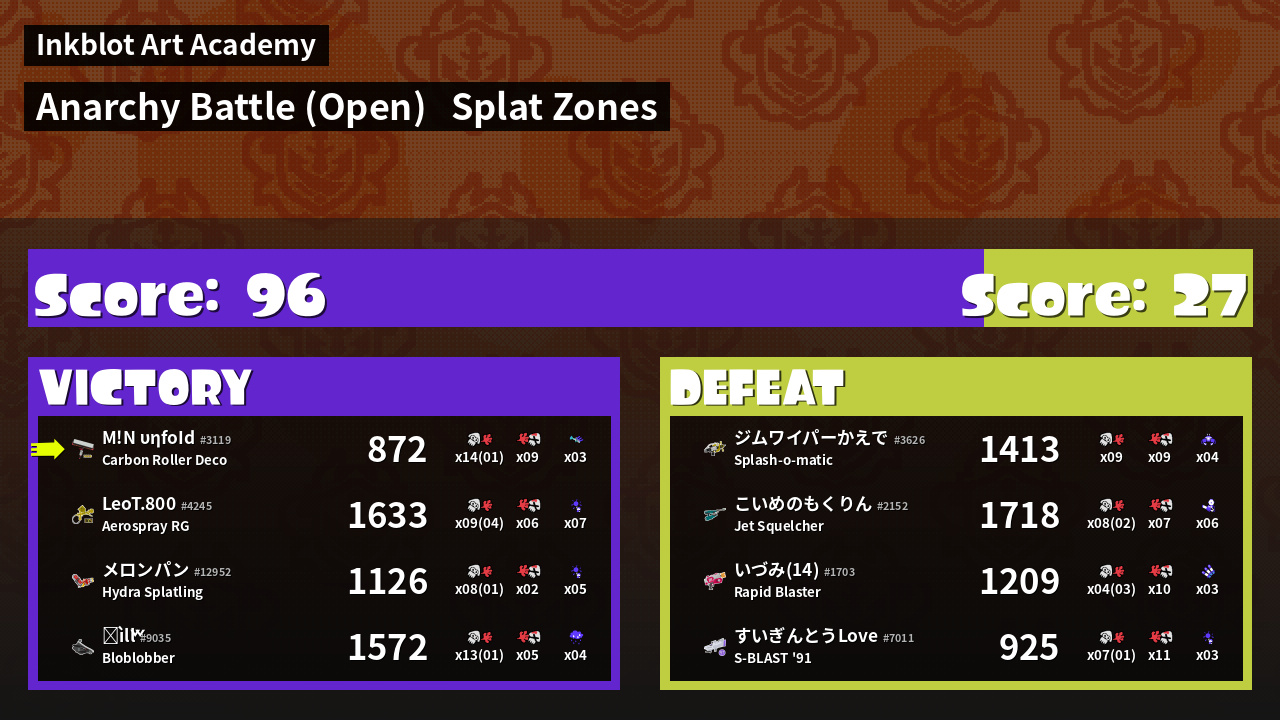 | Mode | Splat Zones - Anarchy Battle (Open) | ||