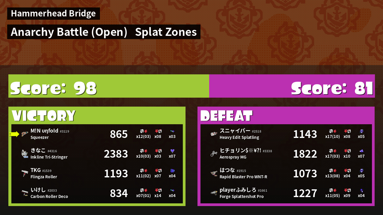 | Mode | Splat Zones - Anarchy Battle (Open) | ||