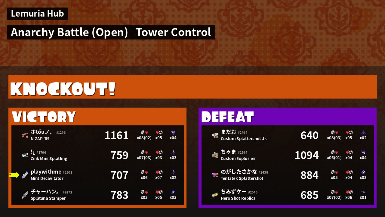 | Mode | Tower Control - Anarchy Battle (Open) | ||