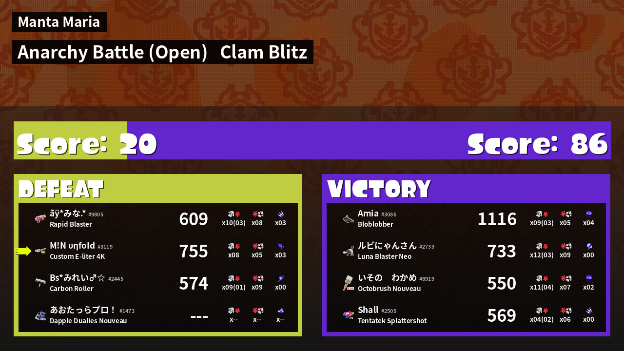 | Mode | Clam Blitz - Anarchy Battle (Open) | ||