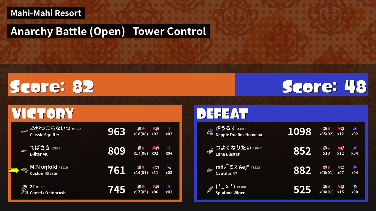| Mode | Tower Control - Anarchy Battle (Open) | ||