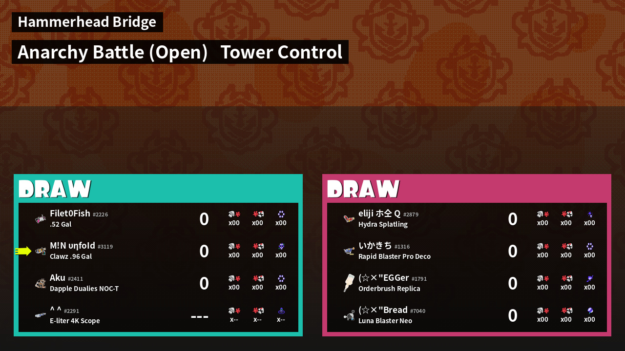 | Mode | Tower Control - Anarchy Battle (Open) | ||