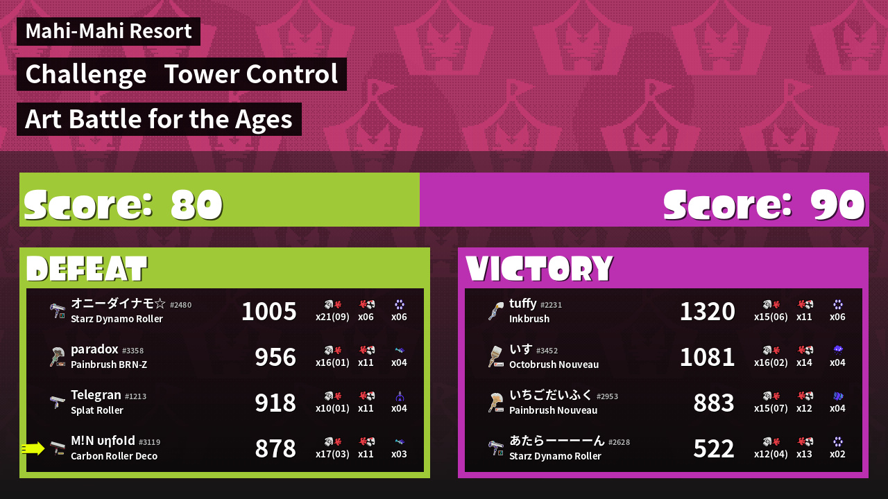 | Medals | #1 Tower Stopper #1 Damage Taker #1 Ink Consumer | ||