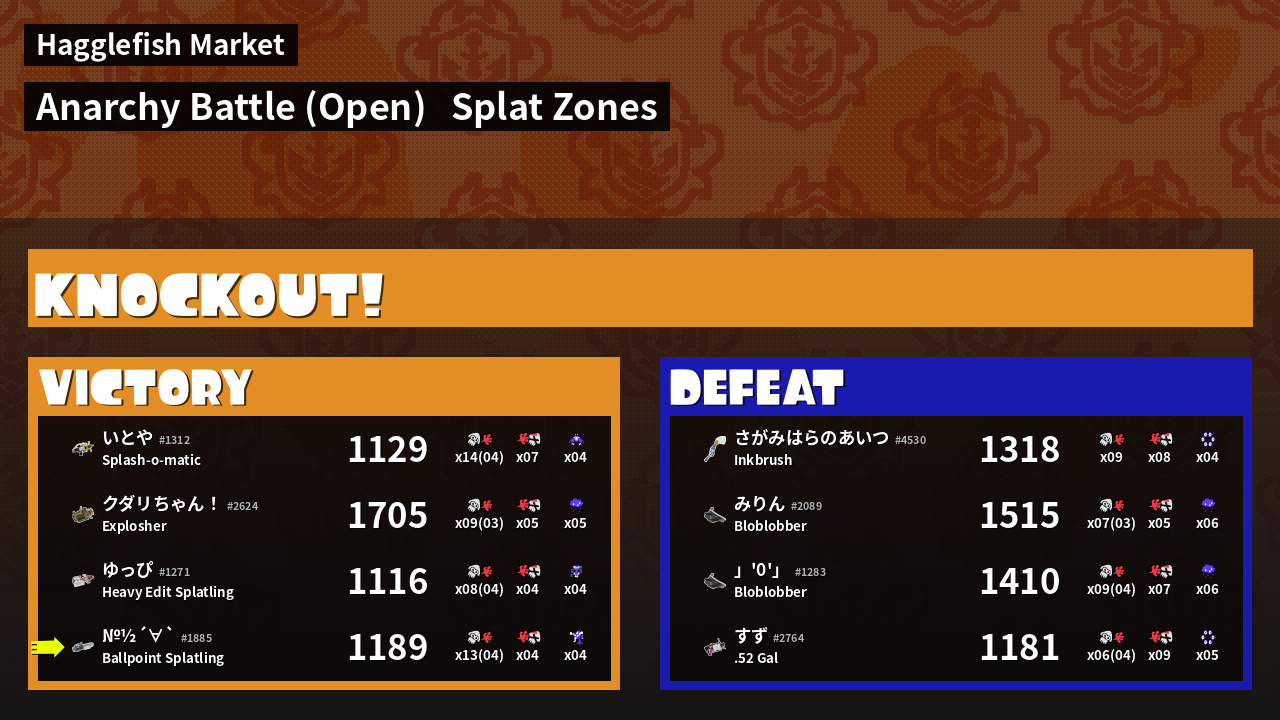 | Mode | Splat Zones - Anarchy Battle (Open) | ||