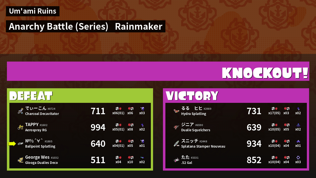 | Medals | #1 Super Jump Spot #1 Splat Assister #1 Rainmaker Stopper | ||