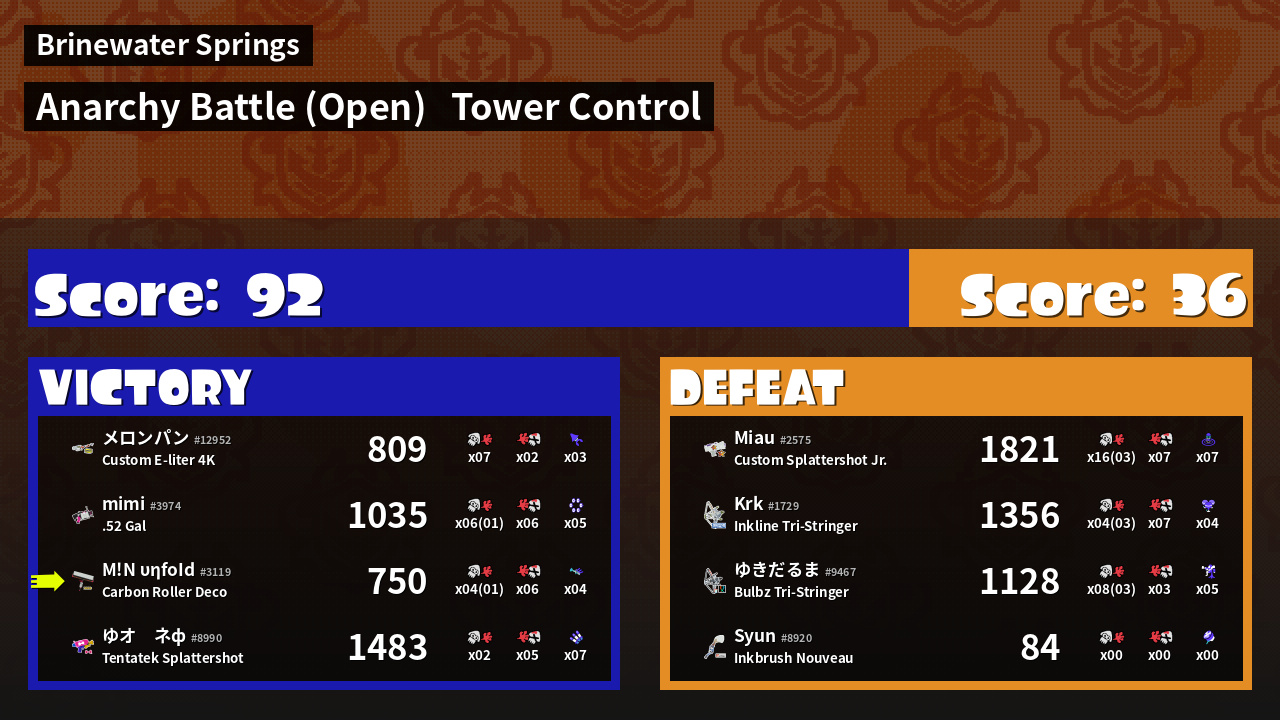 | Mode | Tower Control - Anarchy Battle (Open) | ||
