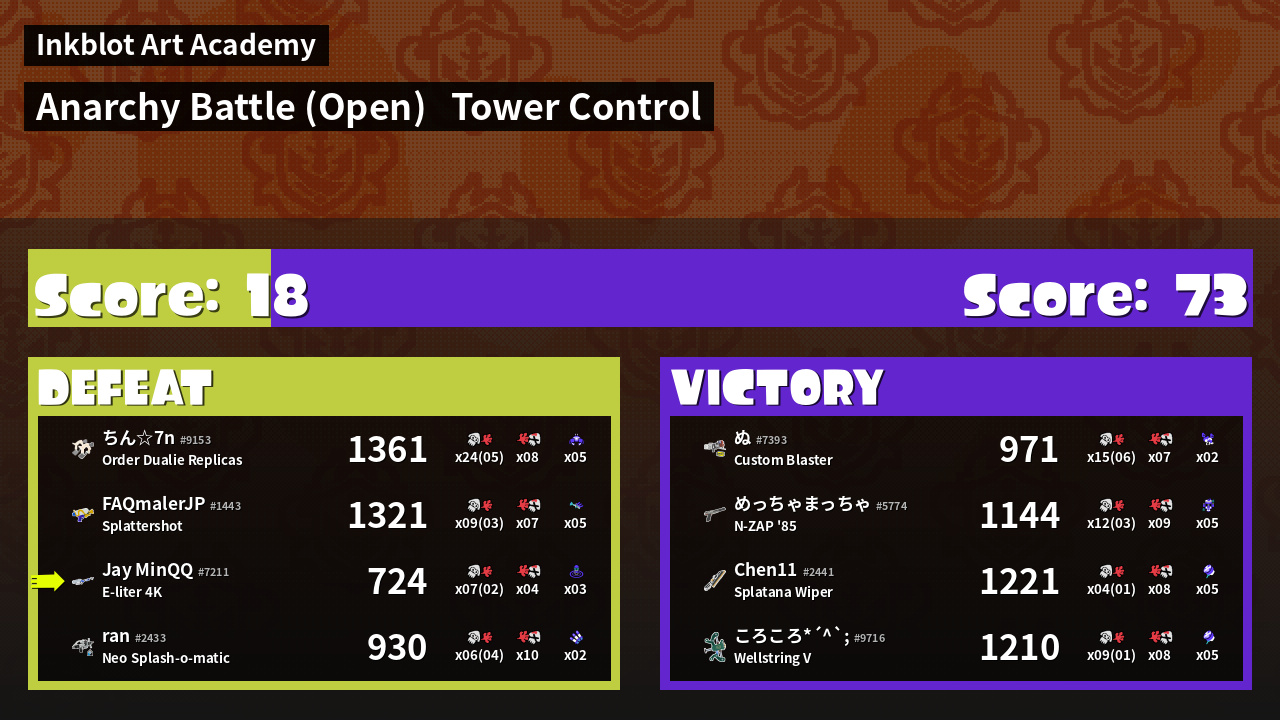 | Mode | Tower Control - Anarchy Battle (Open) | ||