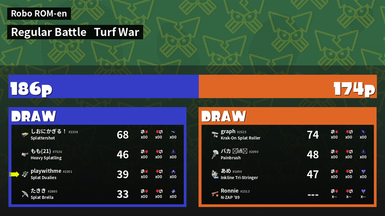 | Mode | Turf War - Regular Battle | ||
