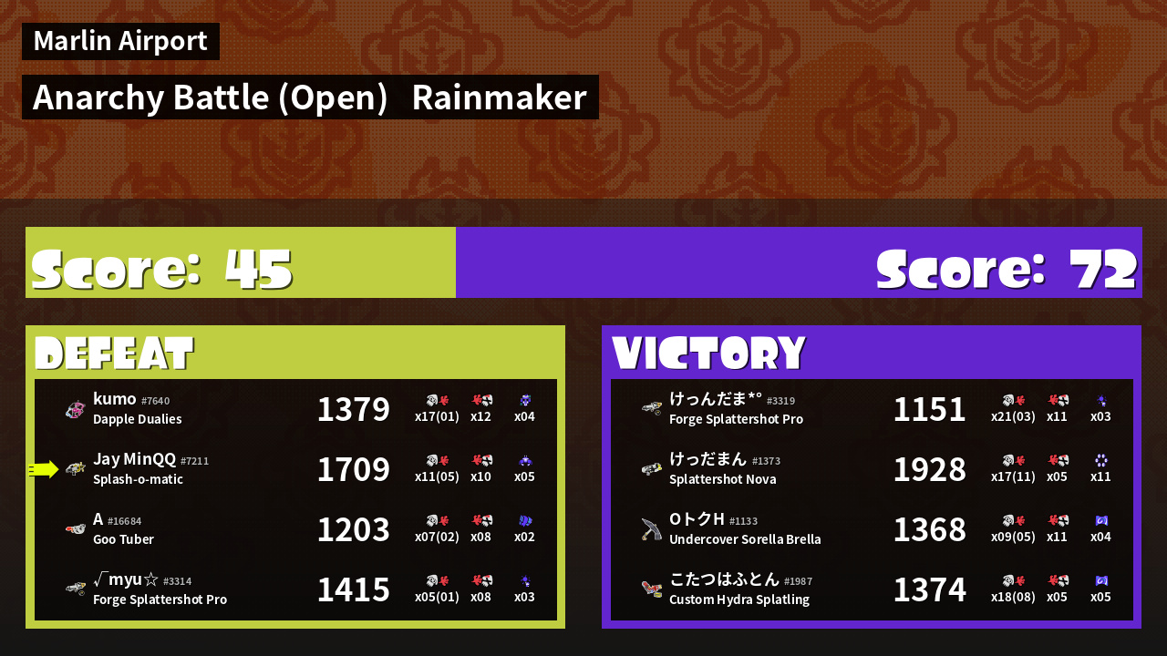 | Medals | #1 Turf Inker #1 Splat Assister #1 Ink Consumer | ||