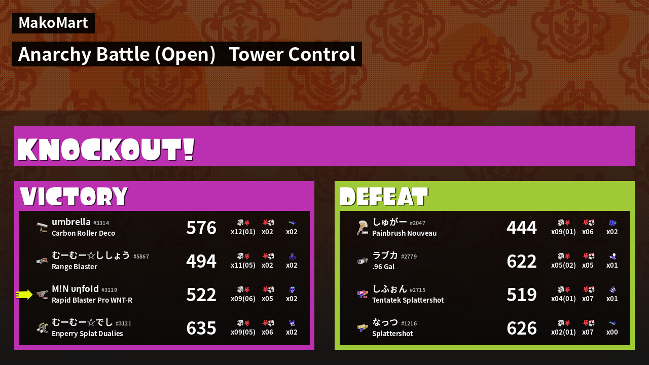 | Mode | Tower Control - Anarchy Battle (Open) | ||