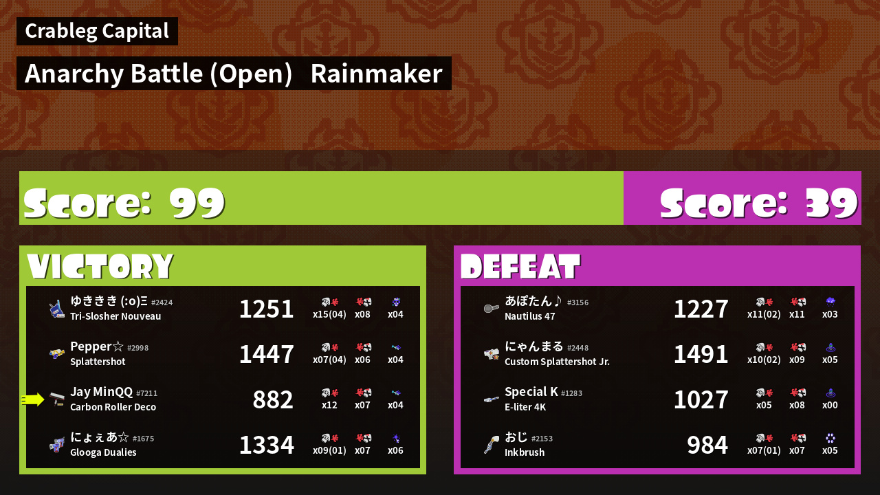 | Mode | Rainmaker - Anarchy Battle (Open) | ||