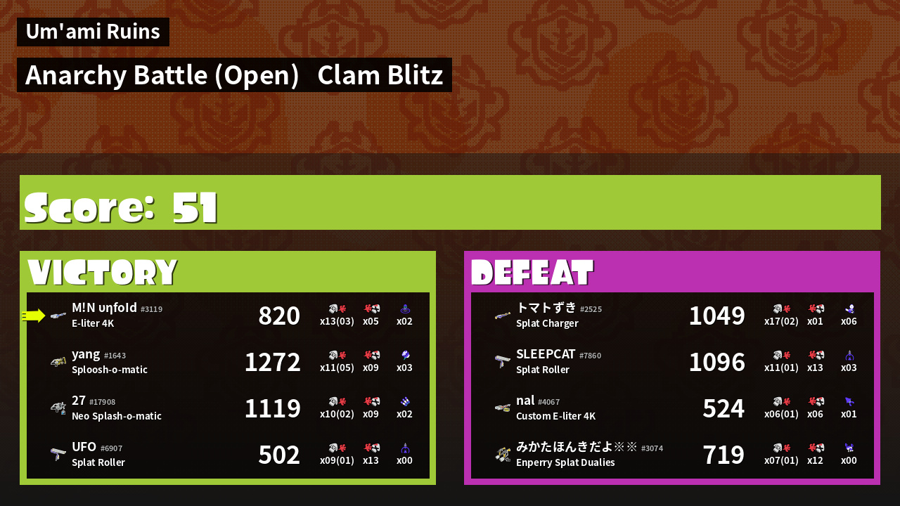| Mode | Clam Blitz - Anarchy Battle (Open) | ||
