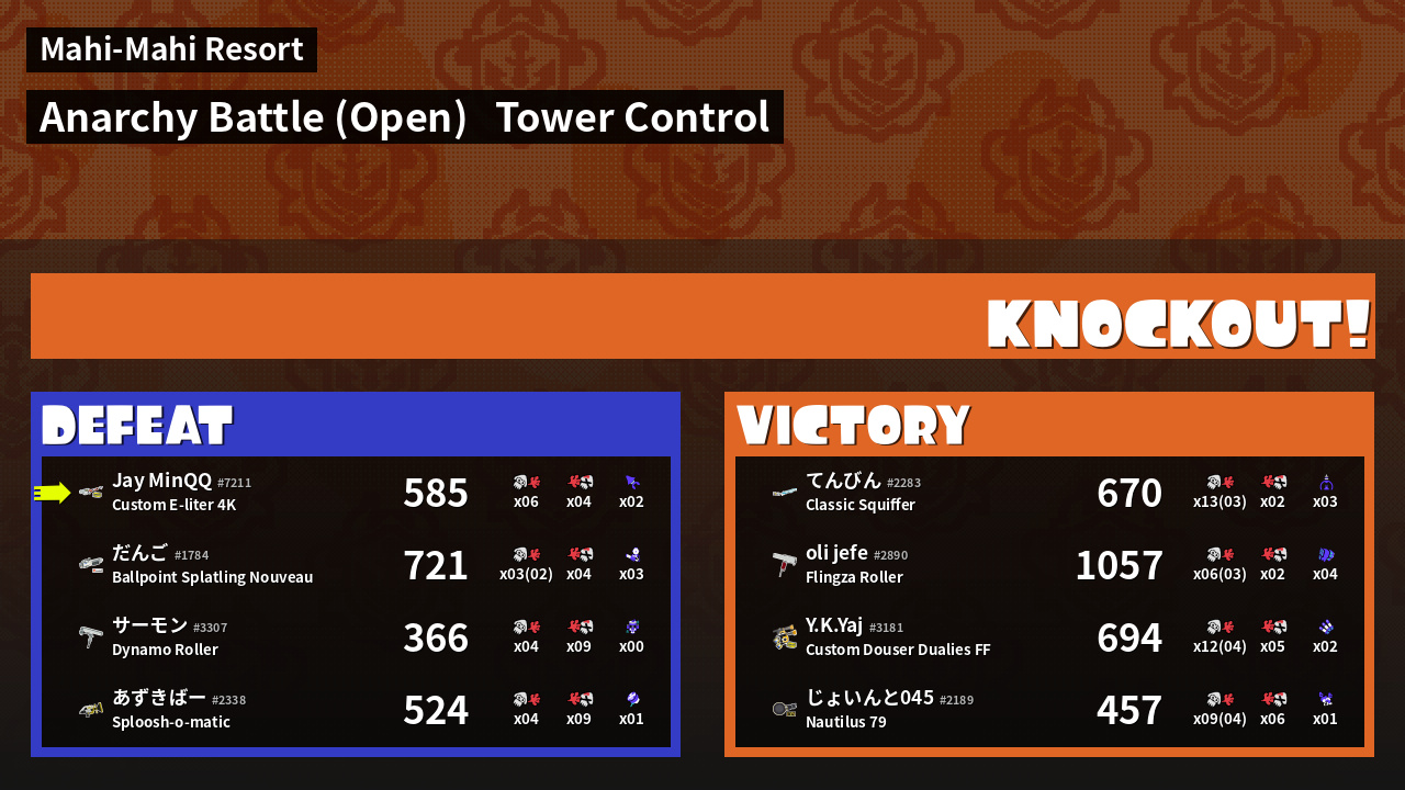 | Mode | Tower Control - Anarchy Battle (Open) | ||
