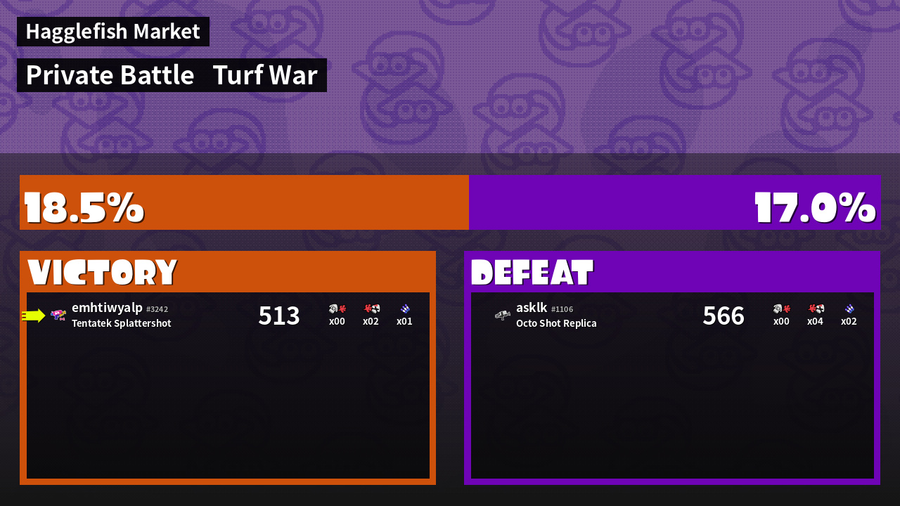 | Mode | Turf War - Private Battle | ||