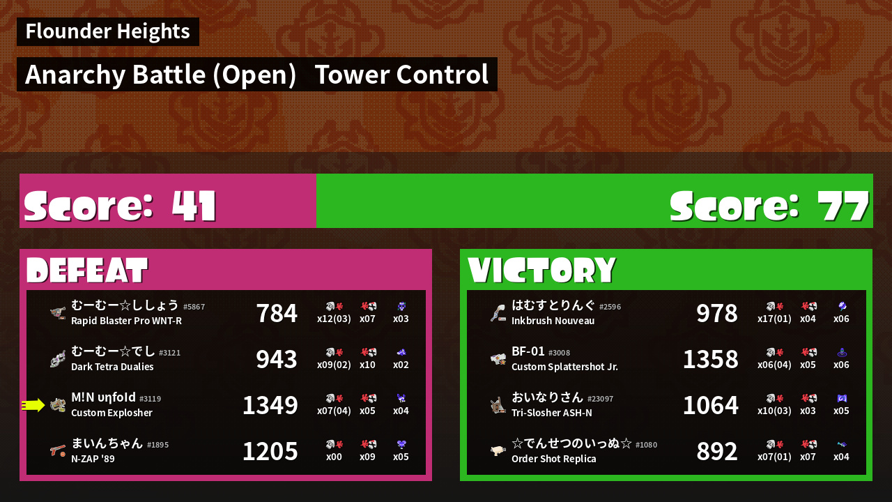 | Medals | #1 Turf Inker #1 Splat Assister #1 Checkpoint Breaker | ||