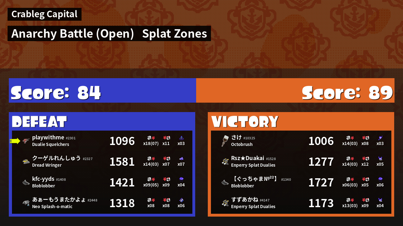 | Mode | Splat Zones - Anarchy Battle (Open) | ||