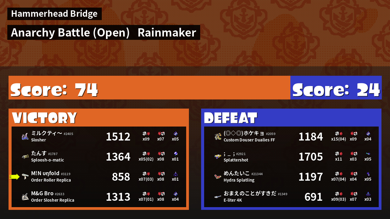 | Mode | Rainmaker - Anarchy Battle (Open) | ||