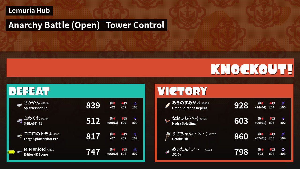 | Mode | Tower Control - Anarchy Battle (Open) | ||