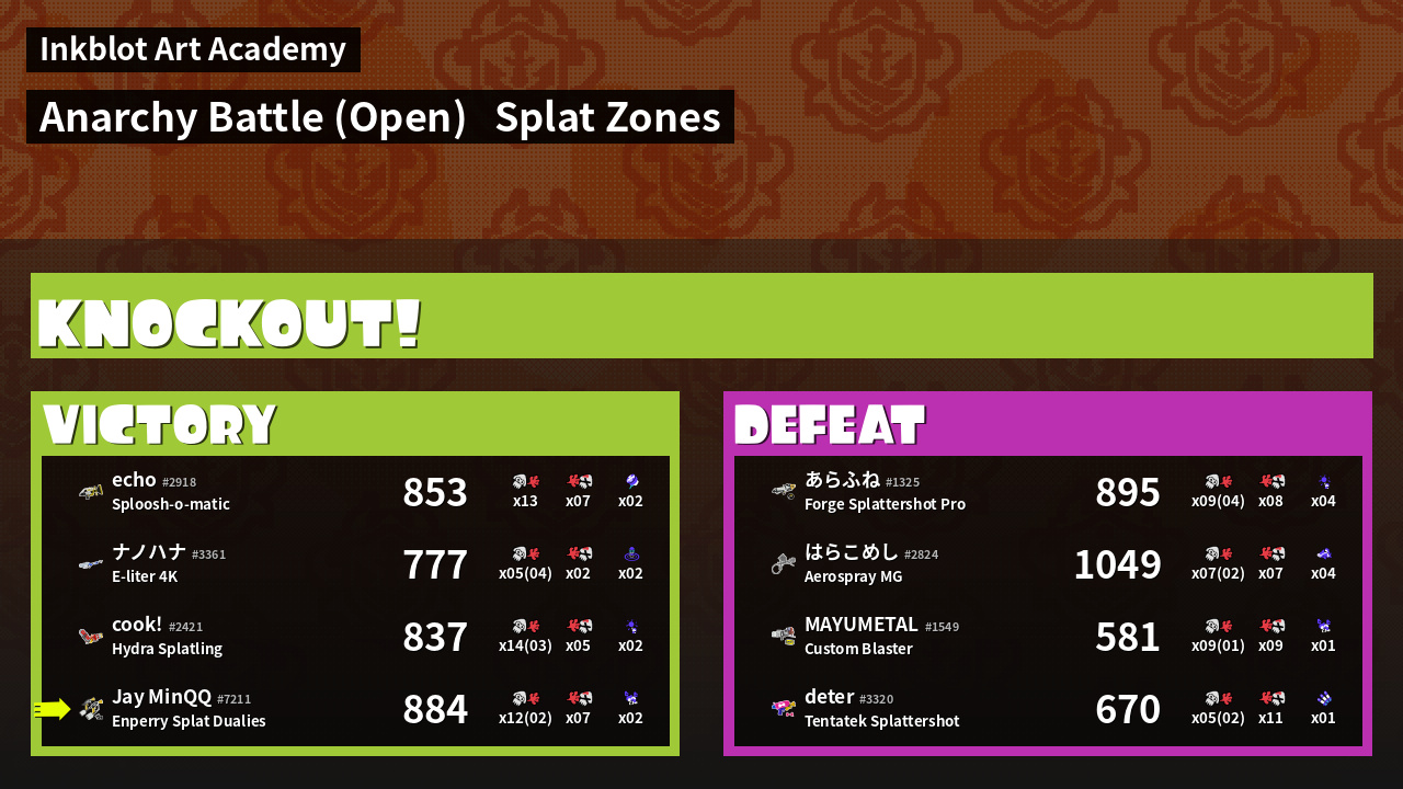 | Mode | Splat Zones - Anarchy Battle (Open) | ||