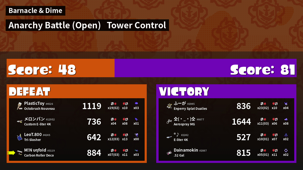 | Mode | Tower Control - Anarchy Battle (Open) | ||