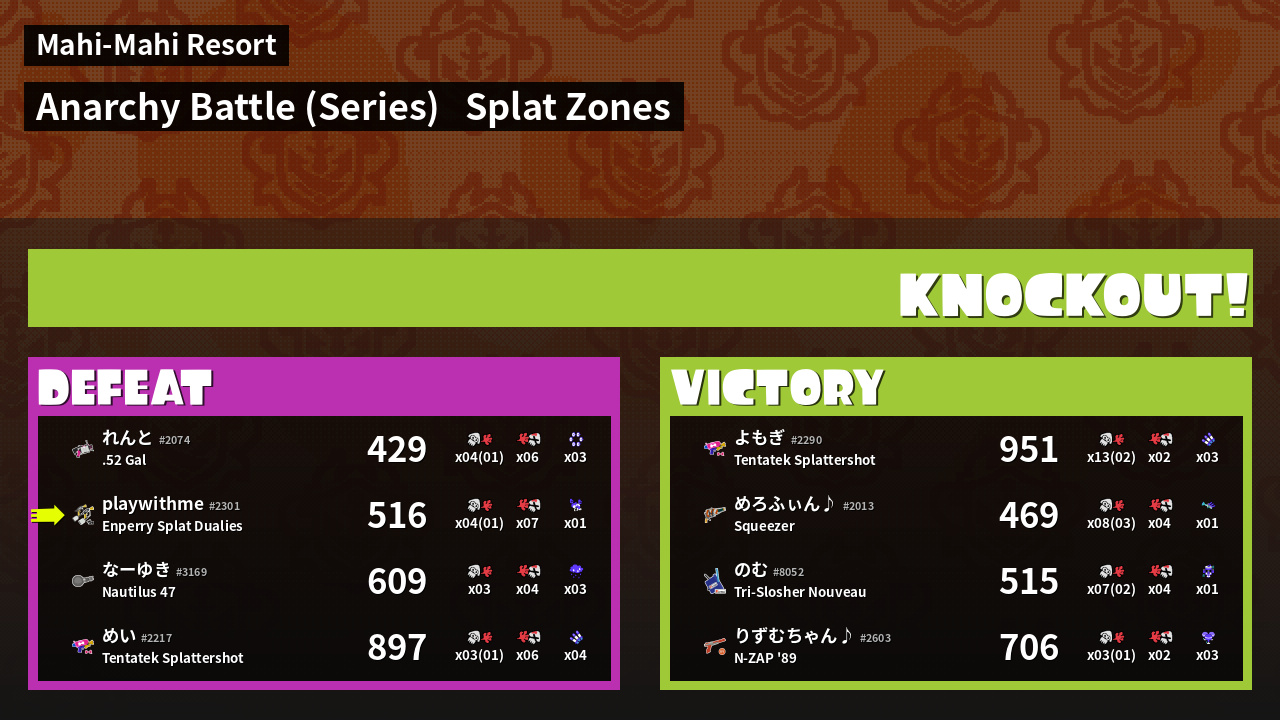 | Medals | #1 Overall Splatter #1 Splat Zone Guard #1 Enemy Splatter | ||