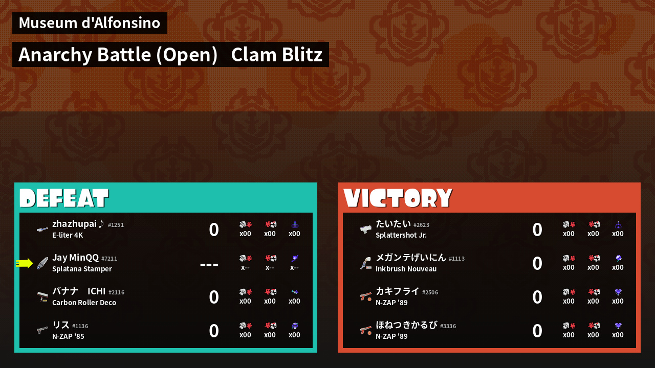 | Mode | Clam Blitz - Anarchy Battle (Open) | ||