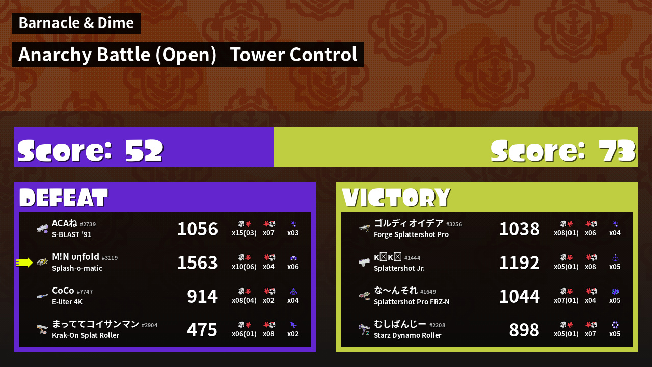 | Mode | Tower Control - Anarchy Battle (Open) | ||