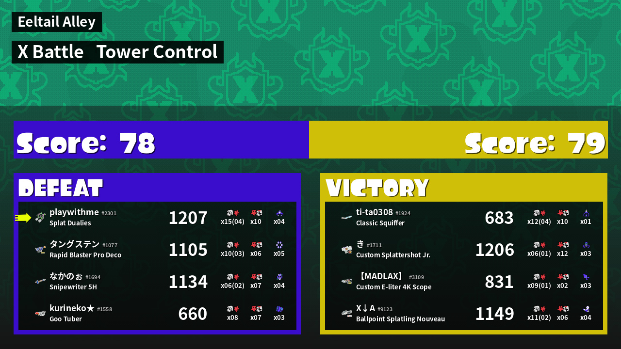 | Mode | Tower Control - X Battle | ||