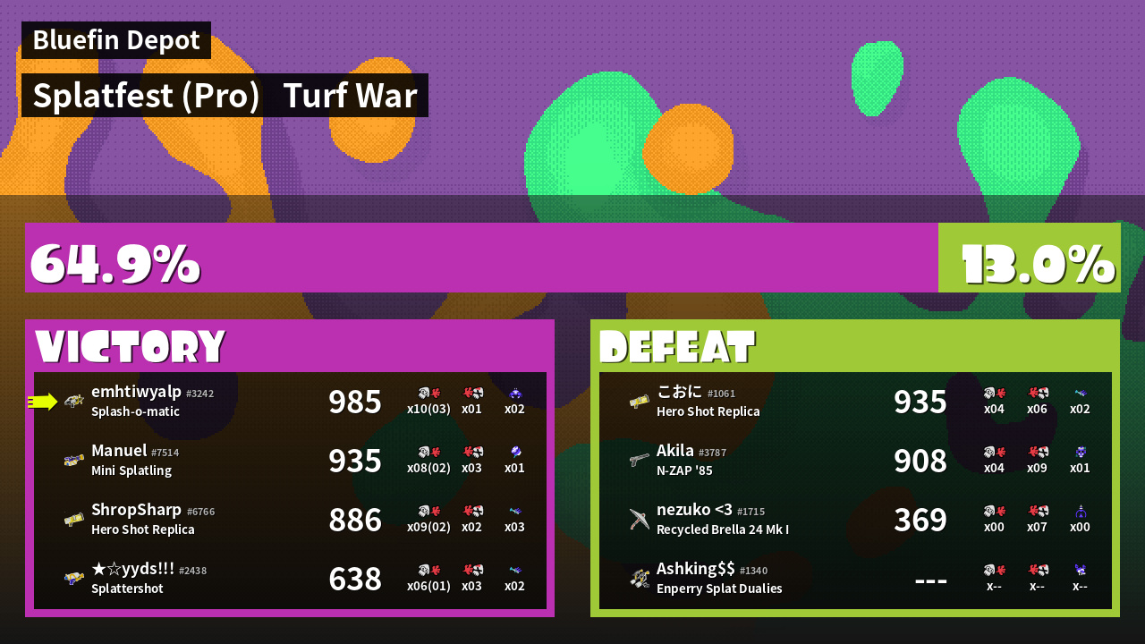 | Mode | Turf War - Splatfest (Pro) | ||