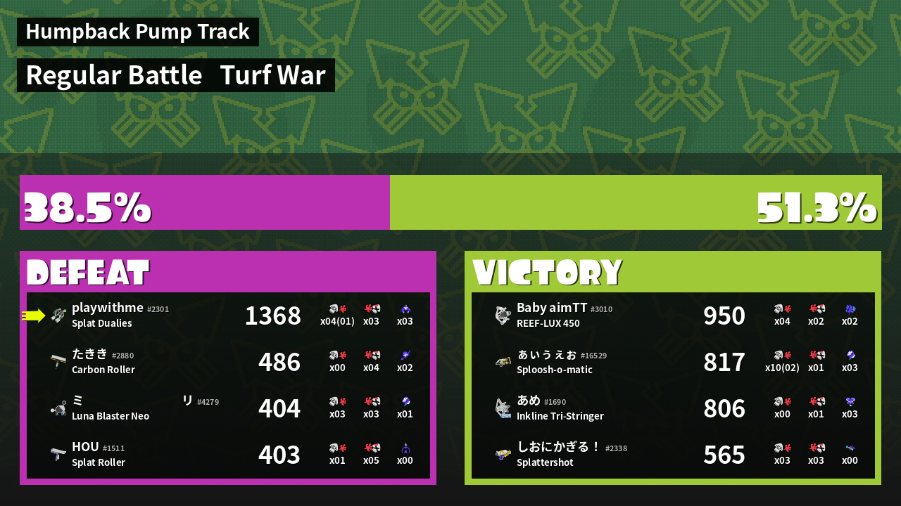 | Mode | Turf War - Regular Battle | ||