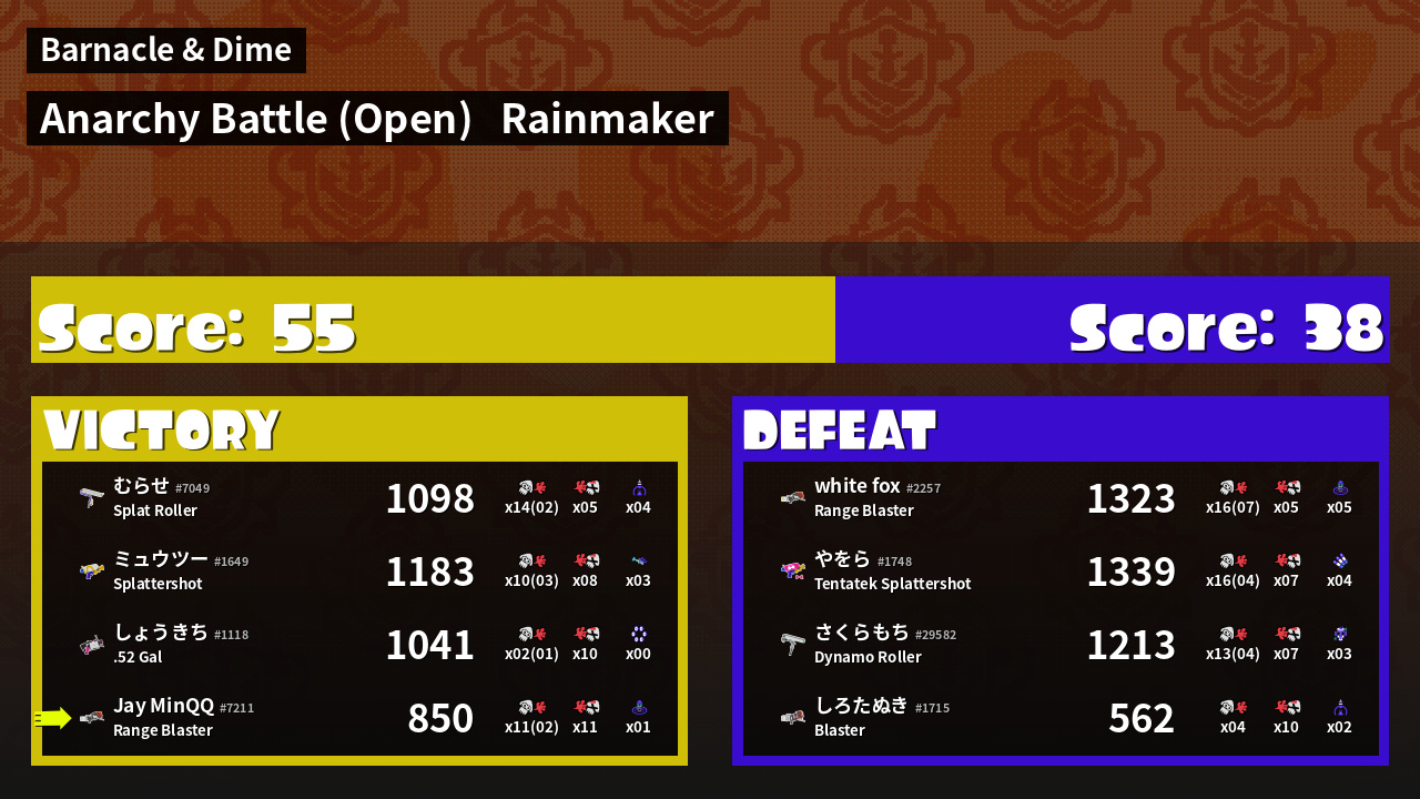 | Mode | Rainmaker - Anarchy Battle (Open) | ||