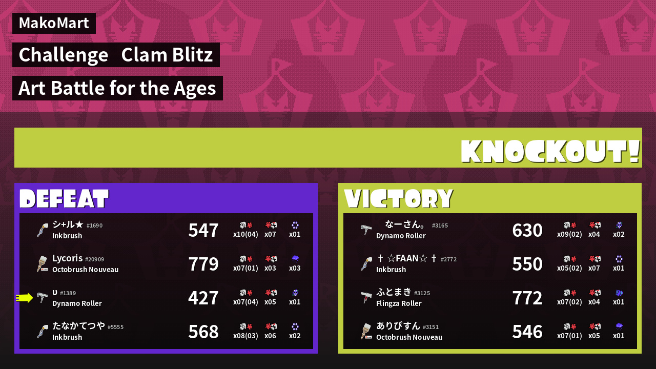 | Medals | #1 Clam Carrier #1 Splat Assister #1 Tacticooler User | ||