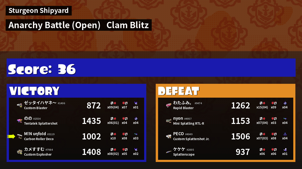 | Mode | Clam Blitz - Anarchy Battle (Open) | ||